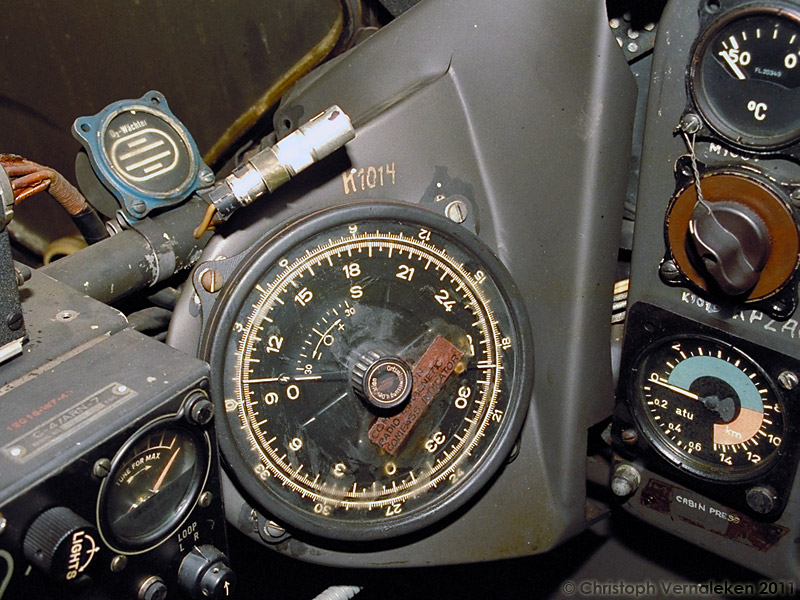 The front right of the cockpit features the radio magnetic compass indicator (58). In the left upper corner of the image below, you can see the O2-indicator for the observer (57). In oder to read the word on the button in the center of the compass, simply click it. If you don't happen to speak German, Ortsmissweisung means location deviation.