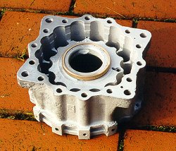 The front part after detachment of the pinions and most of the screws for the fuel injection lines | The front part of the casing after removal of the damaged basis for the de-aerator (...and some hours of polishing!) | ||